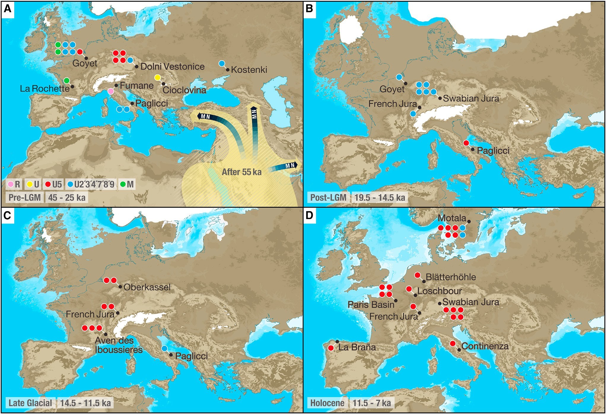 Trois individus vivant en Europe avant le dernier maximum glaciaire appartiennent à un haplogroupe aujourd’hui absent chez les Européens (M) mais présent chez les Asiatiques, les Australasiens et les Amérindiens. Cette perte de diversité génétique est une conséquence du dernier maximum glaciaire il y a environ 25000 ans lorsque les populations de chasseurs-cueilleurs européens se sont déplacés dans des zones refuges plus au Sud.