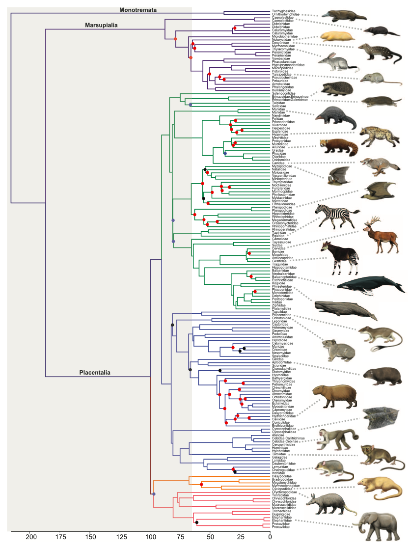 Il s'agit ici d'un rapport d'analyses des relations, de l'origine des divergences et de la diversification de 97 à 99% des mammifères sur la base d'une matrice moléculaire incluant 164 mammifères, 5 groupes extérieurs et 26 fragments de gènes. Les estimations du temps de divergence entre les espèces à partir des données moléculaires sont basées sur un ensemble de mesures d'échantillonnages fossiles.