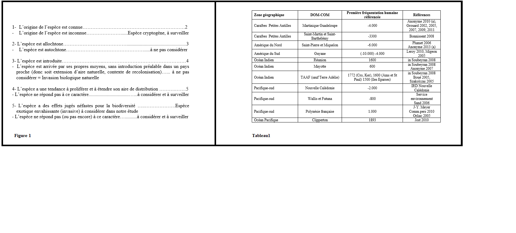 Tableau1: référencement des premières fréquentations humaines en Outre-mer.