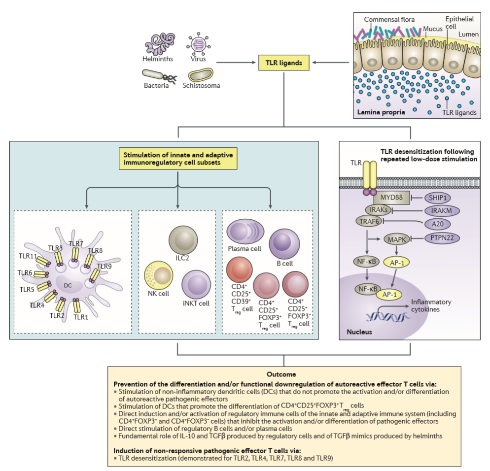 Rôles des TLRs dans la stimulation de la régulation immunitaire par les pathogènes et les commensaux