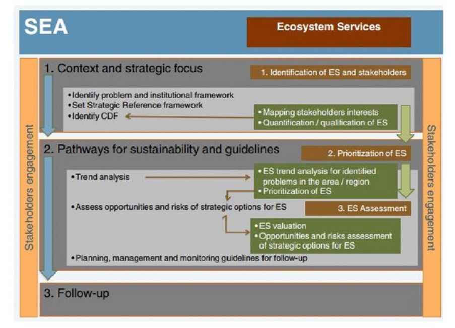 Les auteurs développent une méthodologie pour intégrer les services écosystémiques dans les EES. Elle est basée sur les principes suivants :