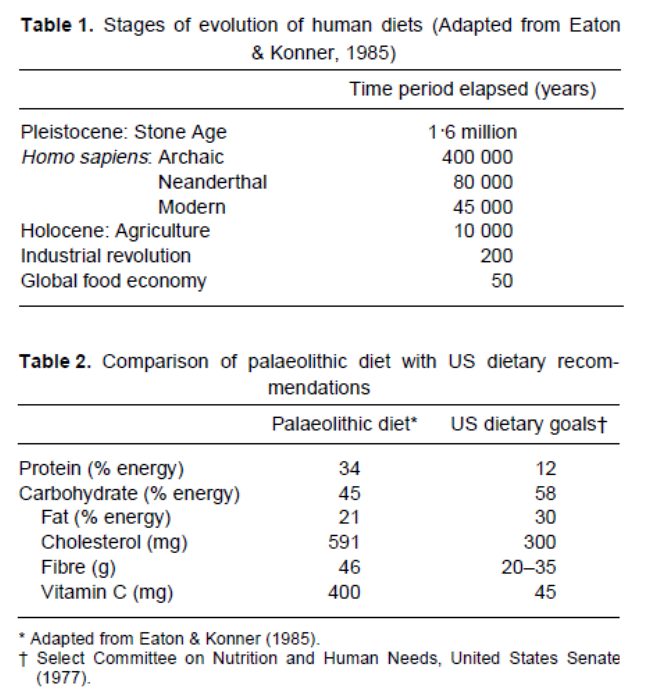 Tableau 2. Comparaison du régime paléolithique avec les recommandations alimentaires américaines