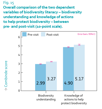 Globalement, les résultats montrent que visiteurs de zoos et aquariums ont de meilleurs connaissances concernant la biodiversité et les façons de la protéger après leur visite.