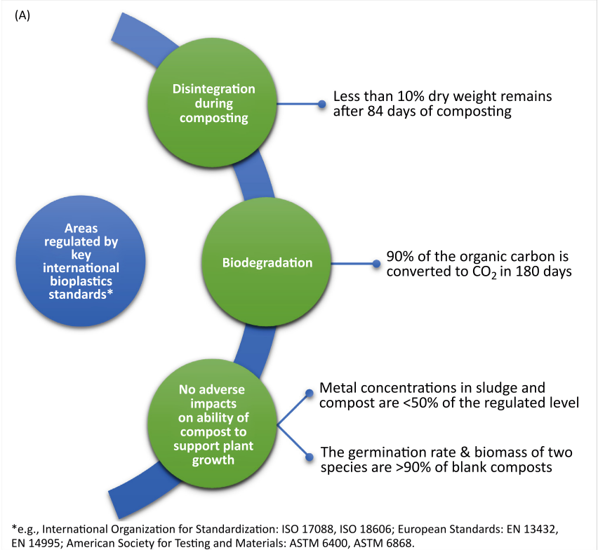 Résumé des principales normes internationales pour les certifications de dégradabilité des bioplastiques (d'après ASTM, 2017, Standard Specification for Labeling of End Items That Incorporate Plastics and Polymers as Coatings or Additives with Paper and Other Substrates Designed to Be Aerobically Composted in Municipal or Industrial Facilities)