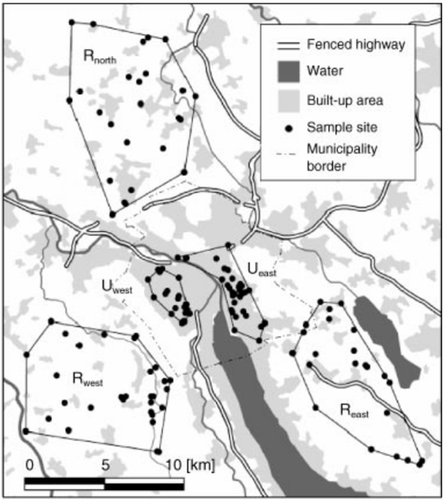 The red fox ( Vulpes vulpes ) is one of the best-documented examples of a species that has successfully occupied cities and their suburbs during the last century. The city of Zurich (Switzerland) was colonized by red foxes 15 years ago and the number of recorded individuals has increased steadily since then. Here, we assessed the hypothesis that the fox population within the city of Zurich is isolated from adjacent rural fox populations against the alternative hypothesis that urban habitat acts as a constant sink for rural dispersers. We examined 11 microsatellite loci in 128 foxes from two urban areas, separated by the main river crossing the city, and three adjacent rural areas from the region of Zurich. Mean observed heterozygosity across individuals and the number of detected alleles were lower for foxes collected within the city as compared with their rural conspecifics. Genetic differentiation was significantly lower between rural than between rural and urban populations, and highest value of pairwise F ST was recorded between the two urban areas. Our results indicate that the two urban areas were independently founded by a small number of individuals from adjacent rural areas resulting in genetic drift and genetic differentiation between rural and urban fox populations. Population admixture and immigration analysis revealed that urban–rural gene flow was higher than expected from F ST statistics. In the five to seven generations since colonization, fox density has dramatically increased. Currently observed levels of migration between urban and rural populations will probably erode genetic differentiation over time.