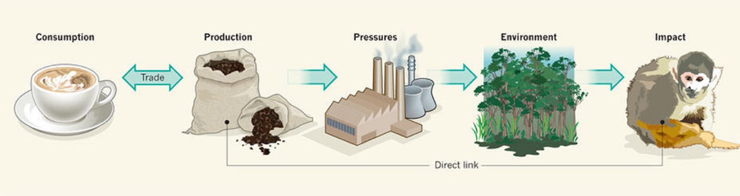 Le développement humain est le résultat d’un processus long et complexe, basé sur les relations entre l’espèce humaine et son environnement. Depuis 10 000 ans où la Terre abritait 5 millions d’humains, la population mondiale a été multipliée par 1500 pour atteindre les 7.5 milliards d’habitants. Cette augmentation démographique s’est accompagné d’un changement du mode de vie humain. Les modes de production se sont également orientés vers une exploitation intensive des ressources naturelles et une occupation de l’espace : des sociétés de chasseurs-cueilleurs aux sociétés industrielles, des sociétés nomades aux sociétés urbaines. Ces deux phénomènes se sont appuyé sur une extension et une transformation de la niche humaine : l’anthropisation. De manière globale, ce processus a des impacts néfastes et profonds sur la biodiversité.