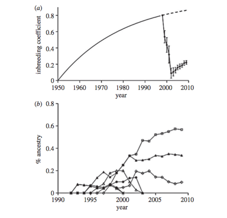 - Est-il possible de réduire la consanguinité et de restaurer la diversité génétique dans de petites populations menacées via l'hybridation ? Et si oui, dans quelles mesures ?