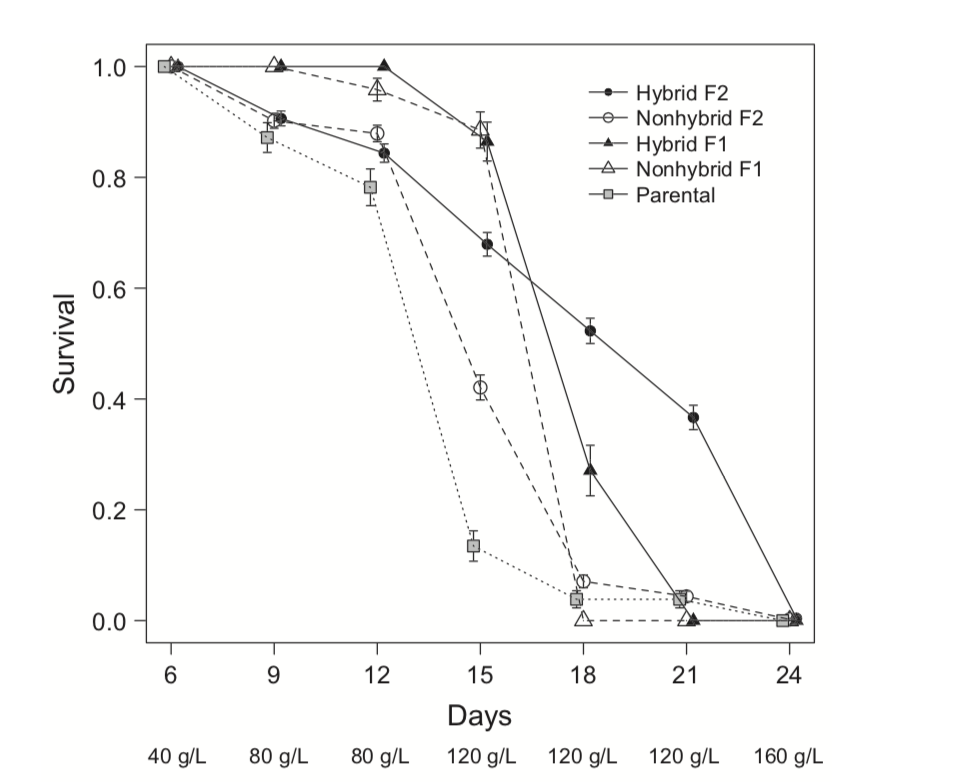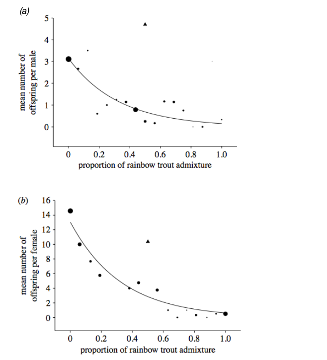 Par ailleurs, l'une des principales préoccupations concernant l'hybridation est le risque de dépression hybride[1][12]. Dans ce cas, les croisements entre populations produisent une descendance hybride ayant une fitness réduite par rapport aux lignées parentales[3]. Que ce soit en laboratoire ou dans la nature, cette dépression hybride a été observée de nombreuses fois, par exemple, suite à l'hybridation entre une espèce de truite invasive et une espèce indigène[8] ou lors de croisements intraspécifiques entre des populations de copépodes[9], de bruants chanteurs[13] ou encore de saumons roses[14].
