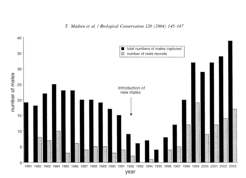 Finalement, les auteurs recommandent de rétablir le flux de gènes entre des populations présentant le moins de divergences génétiques possibles et habitant dans des environnements similaires. (Frankham & al. 2011)