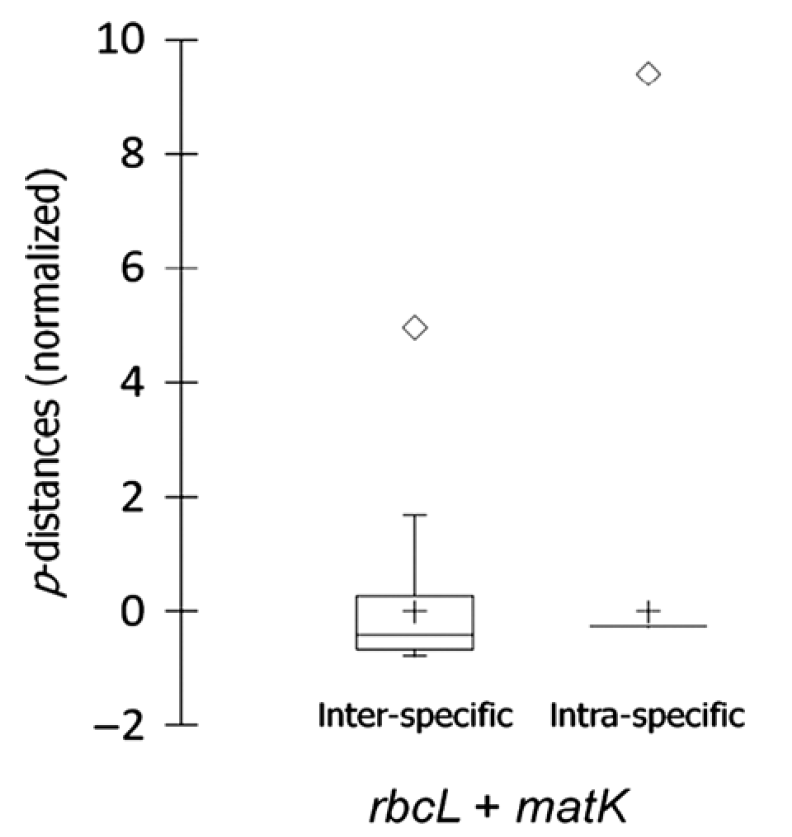 De plus, une autre méthode plus efficace que celles des distances génétiques [1], basée sur les différences de caractères génétiques entre séquences code-barres, a été proposée (voir notamment DeSalle et al. 2005). Cette technique n’est pas axée sur le principe de divergence génétique, et ne nécessite donc pas la présence d’un barcoding gap entre les espèces étudiées. Ainsi, en utilisant cette méthode d’analyse, le barcoding se révèle efficace dans les cas complexes (e.g. récente divergence entre espèces) [2].