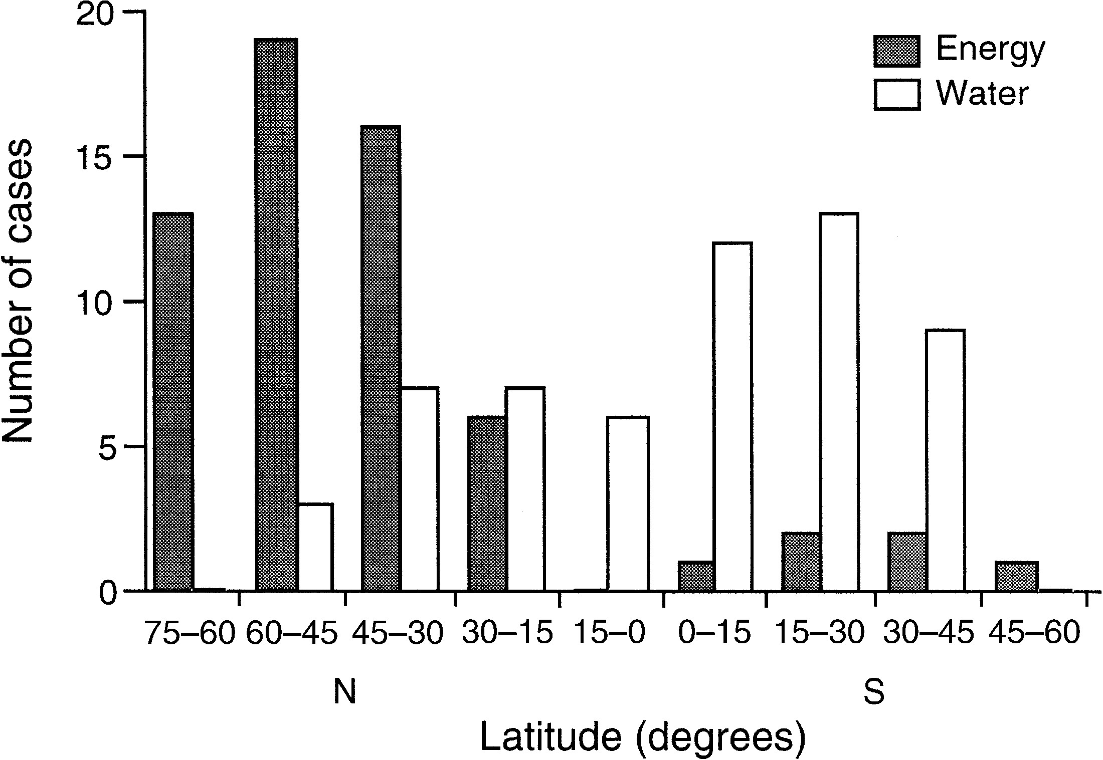 Les hypothèses responsables de cette variation latitudinale de biodiversité sont néanmoins débattues (Hillebrand, 2005). Ces hypothèses font appel à des processus écologiques et évolutifs variés (Visser et al, 2013; Condamine et al, 2012; Rolland et al, 2014) mais qui dépendent tous d’une cause proximale en lien avec des facteurs climatiques, historiques et géographiques (Mannion et al, 2014). La variabilité de l’intensité d’insolation et l’impact de la saisonnalité sont des facteurs climatiques prépondérants (Mannion et al, 2015; Condamine et al, 2012; Visser et al, 2013) qui contrastent avec les caractéristiques géographiques et topographiques des régions considérées (Böhm et al, 2005; Kneitel et al, 2015). À ces paramètres s’ajoute une dimension historique rendant compte de l’effet des perturbations et des événements abiotiques passés sur la biodiversité actuelle (Böhm et al, 2005; Mannion et al, 2014; Mannion et al, 2015).