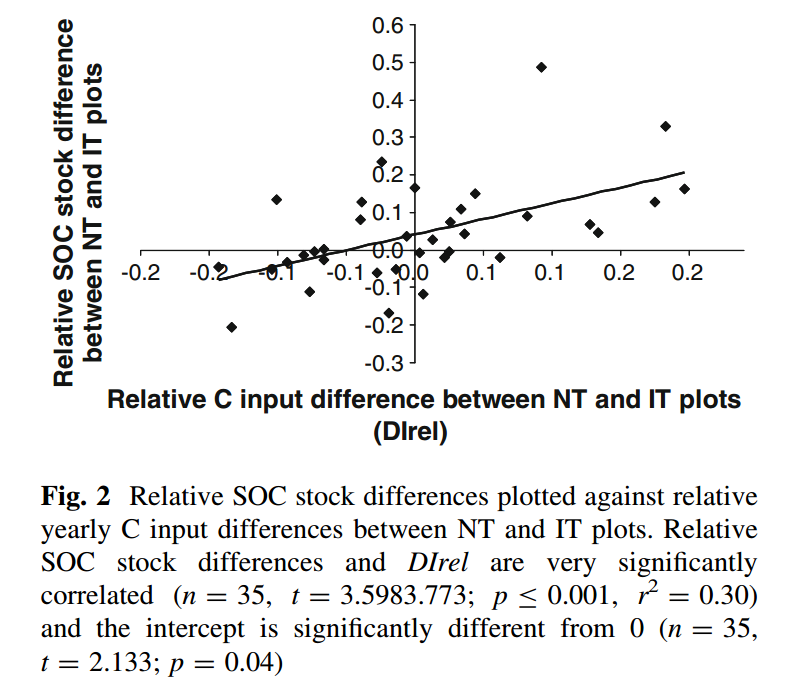 De plus, une grande variabilité est observée dans la variation du stock total de carbone[3][4]. Les facteurs influençant ce stockage sont difficilement identifiables. Alors que certaines études indiquent une influence du climat et du régime hydrique : davantage de carbone serait stocké en milieu tropical ou sub-tropical, et à faible pluviosité (Blanco-Moure et al. 2013). Cette hypothèse a cependant été contredite par Angers Eriksenn (2008)[5] et Virto et al (2012)[1].