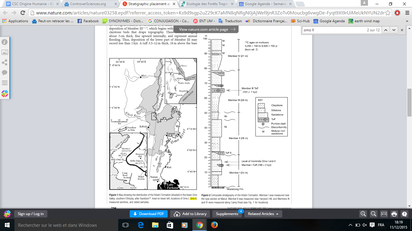 4) Difficultés liées au matériel fossile: La datation des fossiles peut se faire de différentes manières, soit par une estimation de l'âge du fossile lui-même, soit par des méthodes stratigraphiques[10]. Ce second type de méthode peut présenter des problèmes d’interprétation. En effet, des fossiles proches (dans la strate) pourraient avoir été déposé par des sédiments d'âges différents, et même si les fossiles ne se sont pas déplacés, une strate représente plusieurs centaines d'années, ce qui est largement suffisant pour permettre des migrations et/ou des remplacements (Bermudez de Castro et al , 2014). Cela semble être le cas avec les homininés de Dmanisi, pour lesquels Dembo et al (2015) confirment l'hypothèse de Bermudez de Castro et al (2014), que les spécimens trouvés représentent deux espèces distinctes.