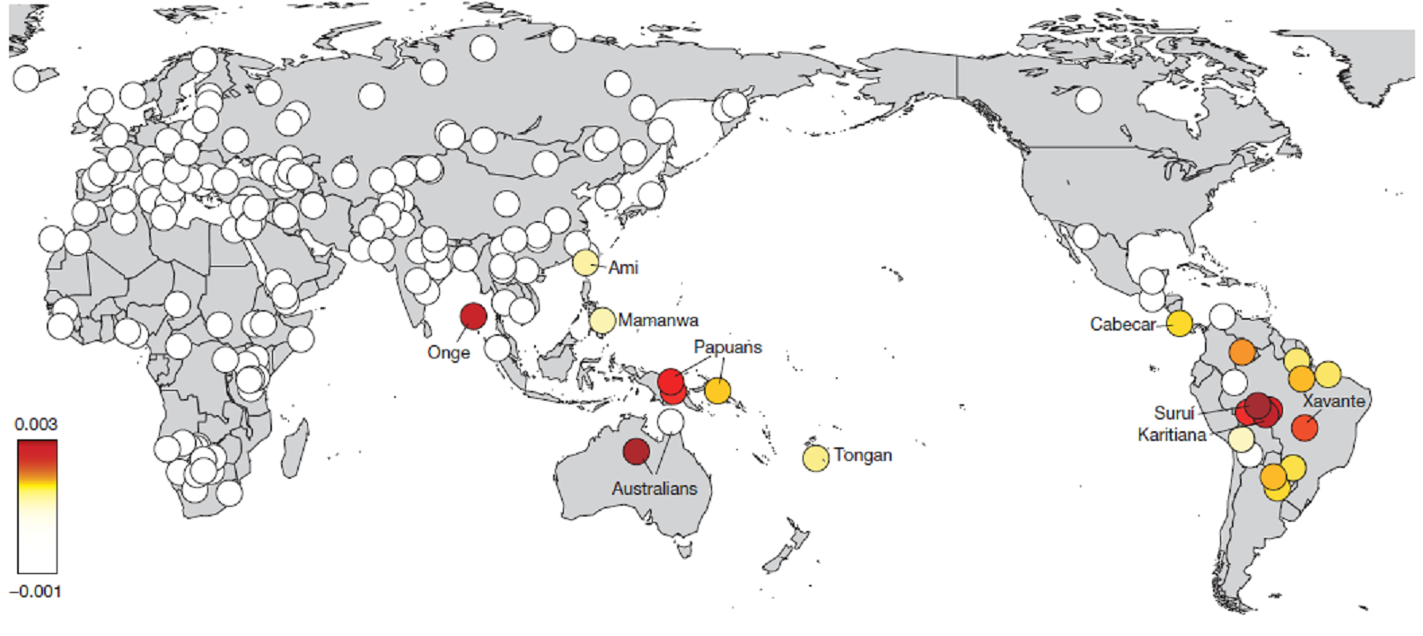 Grâce à l’apport récent de la génétique, ce n’est qu’en 2015 qu’est démontrée une ascendance commune entre des ethnies d’Amérique du Sud et des groupes d’Australie et d’Asie du Sud. Cette ascendance n’est pas partagée avec des groupes d’Amérique du Nord associés à la culture Clovis. [1] Des migrations auraient donc conduit au peuplement d’une partie de l’Amérique du Sud depuis l’Asie et l’Océanie. Le flux de gènes observé n’étant pas partagé avec les populations d’Amérique du Nord, il semblerait que la colonisation de l’Amérique par Homo sapiens soit le résultat d’un processus de double migration : un peuplement du Sud par l’Asie et l’Océanie et un peuplement du Nord par le détroit de Béring.