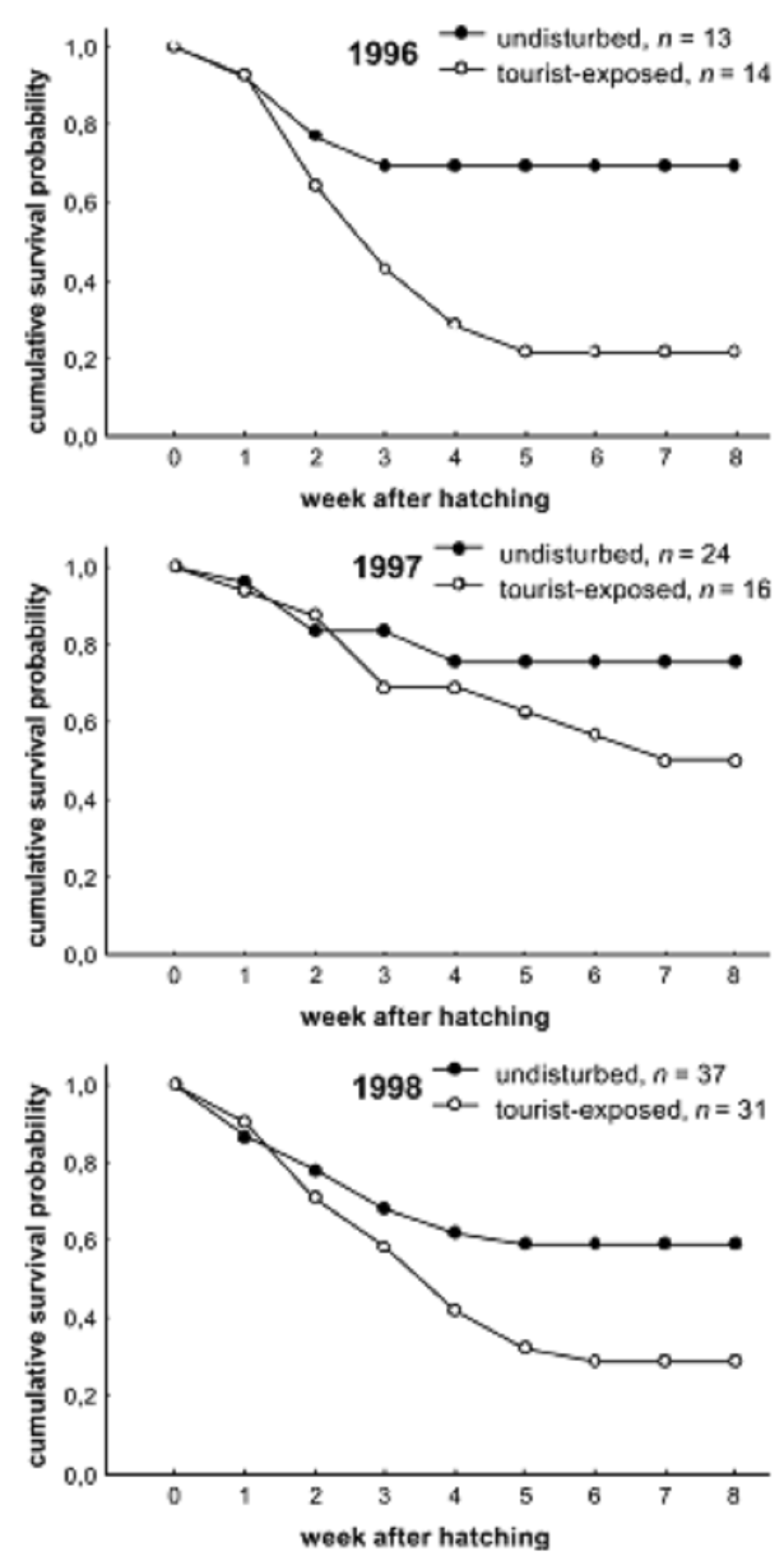Deuxièmement, ces études n'ont à disposition qu'un faible nombre de réplications disponibles. Afin de tester l'effet de l'écotourisme il est nécessaire d'avoir suffisamment de populations ayant subies différents niveaux de perturbations. Or, leur nombre est très faible car l'écotourisme est très souvent local. En conséquence, le très faible nombre de réplicats donne peu de puissance aux tests statistiques utilisés et peu de certitudes sur les résultats obtenus.