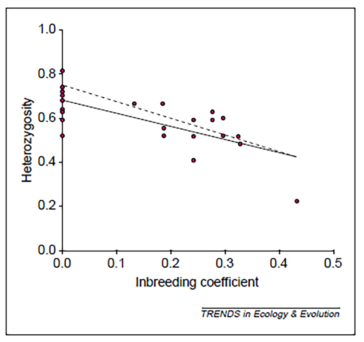 Ces dernières décennies, la biodiversité fait face à de nombreuses épreuves. Entre autres, l’anthropisation croissante des milieux et le réchauffement global de la planète provoquent des fragmentations d’habitat en masse, et par conséquent une fragmentation des populations (Haddad et al., 2015; Keleher et Rahel 1996; Rahel et al., 1996; Mora et al., 2007). La combinaison de ces évènements entraîne donc la réduction de la taille des populations ainsi qu’une diminution de la diversité génétique (Spielman et al., 2004), ce qui les rend plus vulnérables au risque d’extinction locale. Si ces petites populations sont très exposées au risque d’extinction, c’est d’abord à cause de l’effet accru de la dérive génétique (des allèles délétères ont plus de chance de se fixer dans la population suite à la disparition “par le hasard” des porteurs d’allèles sains), mais également à cause de la dépression de consanguinité (Frankham, 1995; Saccheri et al., 1998) : dans les petites populations, l’effectif efficace (c’est à dire la proportion de la population qui se reproduit activement) est faible, les accouplements se font donc entre apparentés proches (cousins, frères, ou même père/fille ou mère/fils). De cette manière, la dépression de consanguinité est la diminution de la valeur sélective ou fitness (capacité à survivre et à accéder à la reproduction, ou succès reproducteur) des descendants issus de parents apparentés par rapport aux descendants de parents non apparentés. Elle est due à un phénomène simple : des allèles délétères récessifs (auparavant non exprimés chez les hétérozygotes dans une population non consanguine) se retrouvent à l’état homozygote, et donc exprimés dans une population consanguine. Un individu consanguin peut alors, par exemple, être porteur de déformations osseuses qui peuvent compromettre dans une certaine mesure ses déplacements, la manière dont il peut chasser, etc… (Räikkönen et al, 2009).