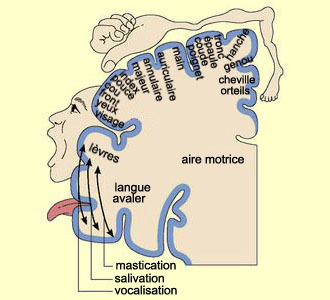 Carte somatotopique de Penfield dans l'aire motrice, issue du site http://lecerveau.mcgill.ca