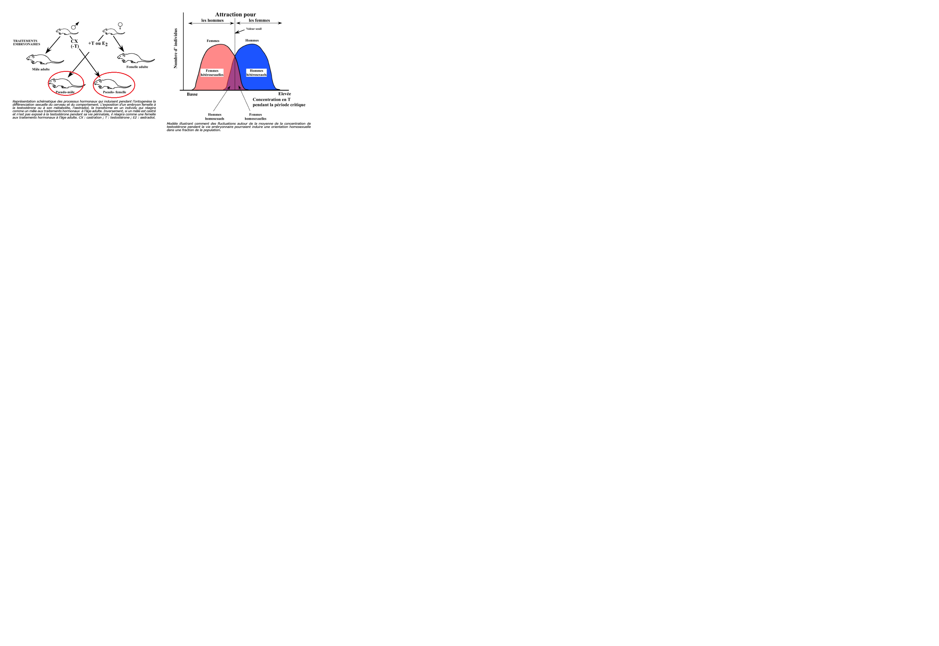Par ailleurs, il semblerait que l’environnement hormonal, notamment le taux de testostérone au niveau embryonnaire, influence le comportement sexuel mais également la physiologie du neurone INAH3 (Balthazar, 2010 ; Rahman, 2005). Blanchard (2004) montre qu’il existe une corrélation positive entre le nombre de frères plus âgés que possède un sujet donné et la probabilité qu’il soit homosexuel. C’est « l'effet des frères plus âgés» (FBO)[2][3][4]. Cela pourrait être expliqué par une réaction de type immunologique, appelée “hypothèse de l’immunisation maternelle progressive” : la mère perçoit l'embryon masculin comme un corps étranger ce qui affecterait le développement de régions cérébrales impliquées dans le déterminisme de l'orientation sexuelle en favorisant l’homosexualité[5][4].