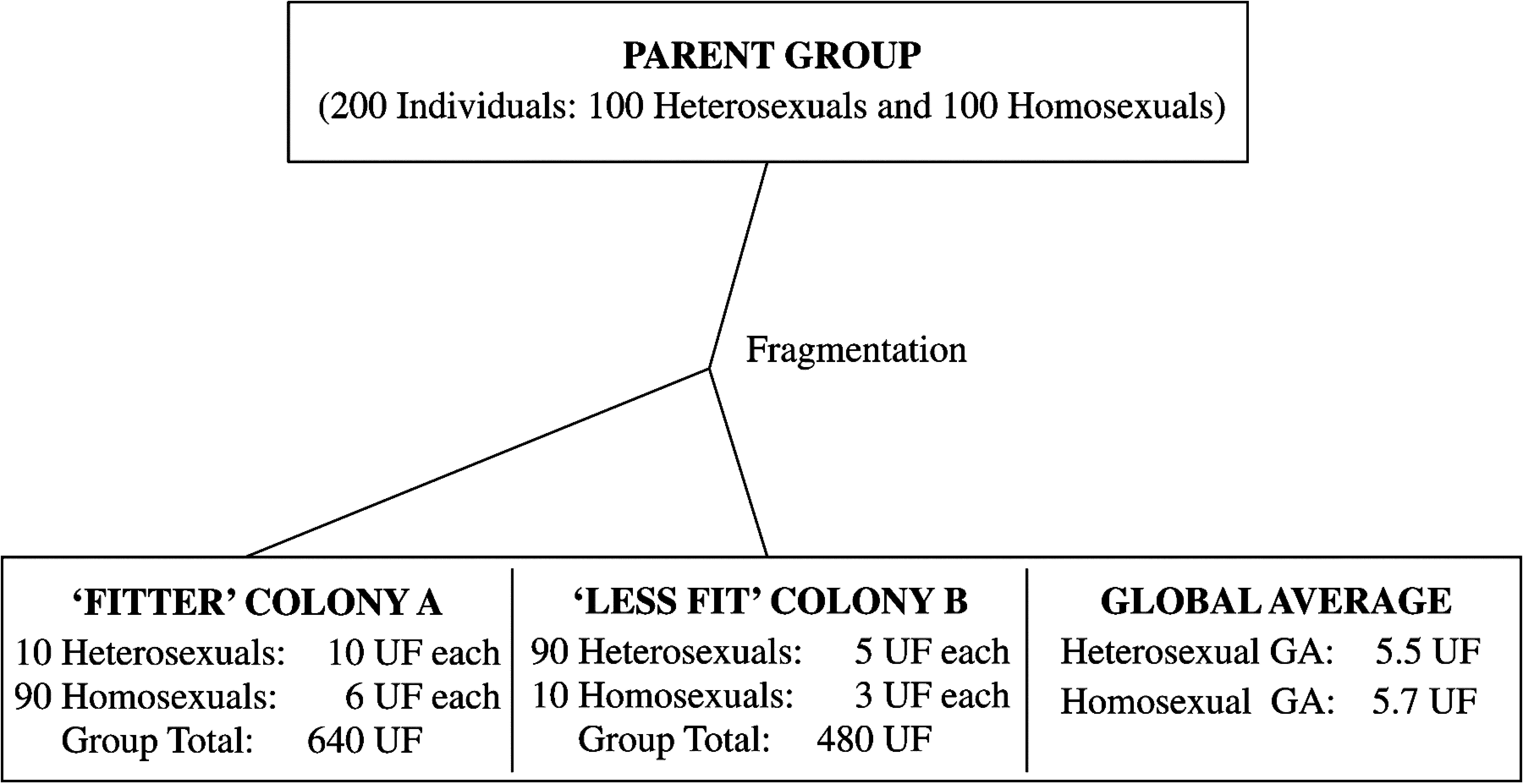De plus, d’autres expériences montrent de nombreux coûts à l’homosexualité. Outre une fécondité réduite voire nulle, les individus homosexuels sont soumis à de fortes pressions sociales, et à des risques accrus de dépression. Un éventuel affaiblissement des pressions de sélection, qui estomperait les coûts de l’homosexualité exclusive, pourrait également être à l’origine de son maintien.